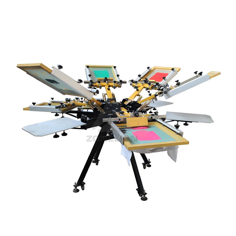 Machine d'impression de poulpe plate manuelle Machine de sérigraphie rotative de t-shirt à 6 couleurs et 6 stations