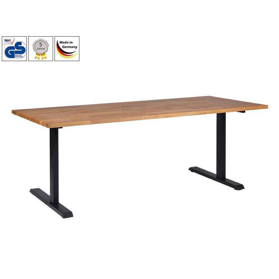 Mobilier de bureau : Bureau Thea, réglable manuellement en hauteur, avec plateau en bois massif en chêne * Certificat GS