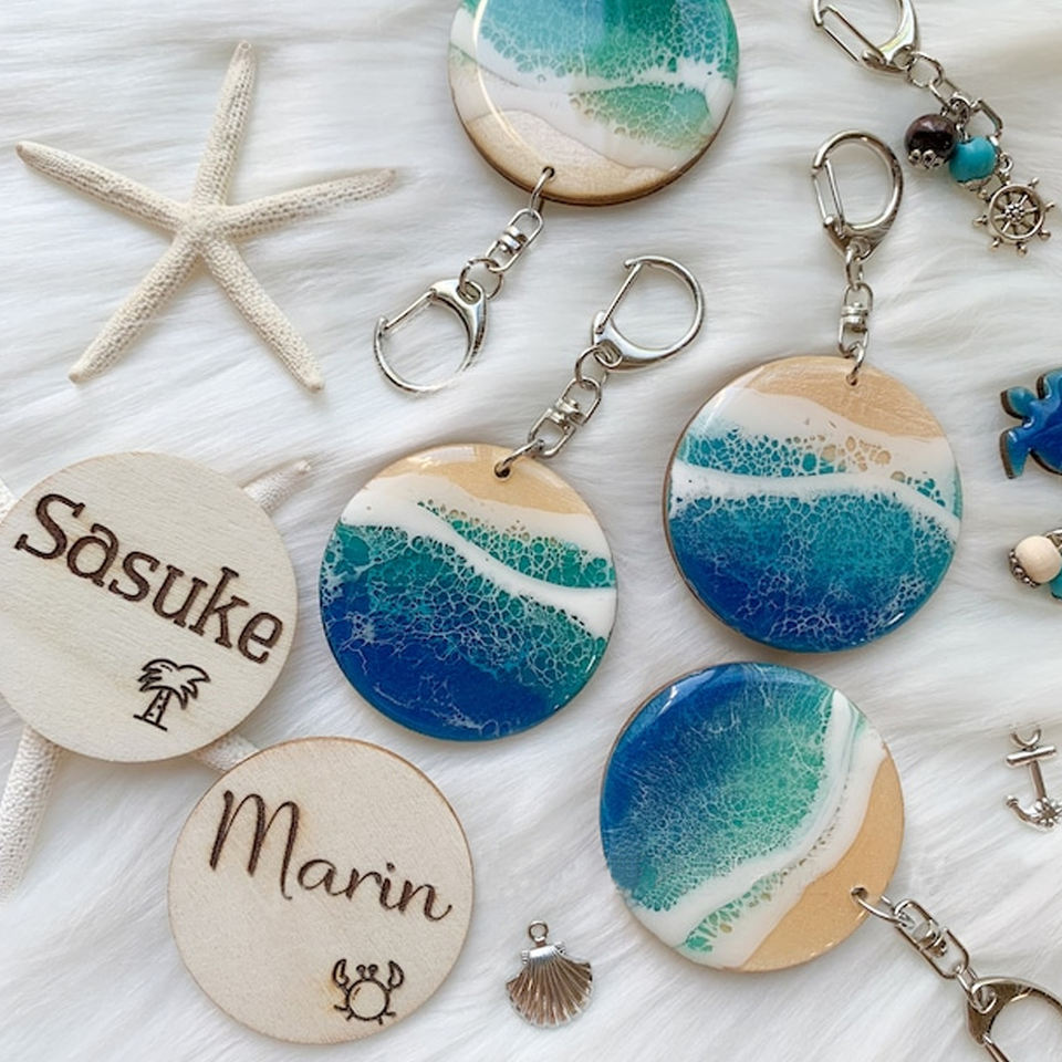 Porte-clés personnalisé en bois et résine, imprimé et gravé, avec nom, motif de Noël mignon, populaire, en métal et bois vierge