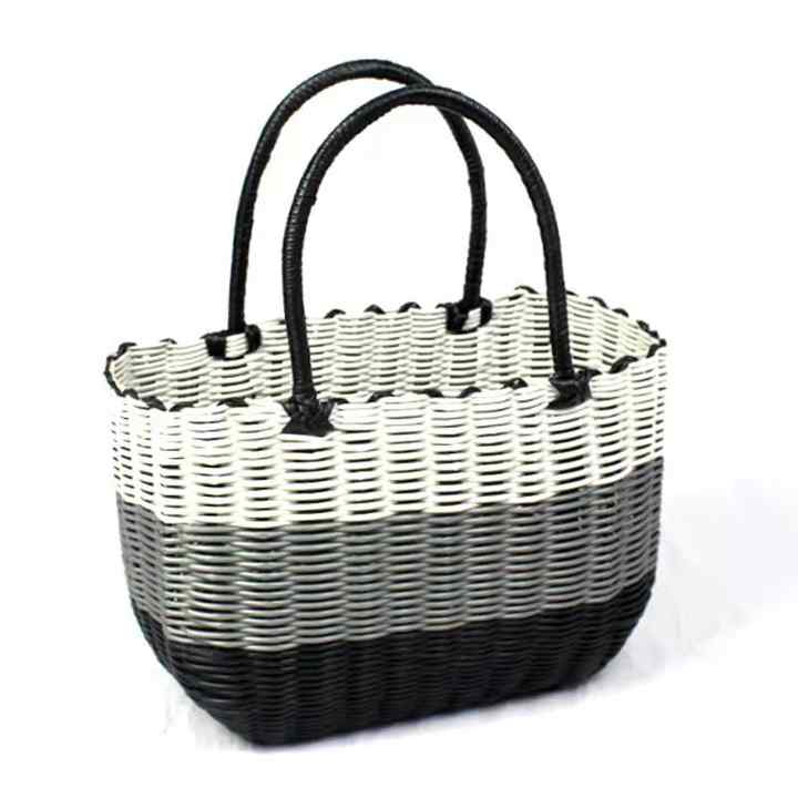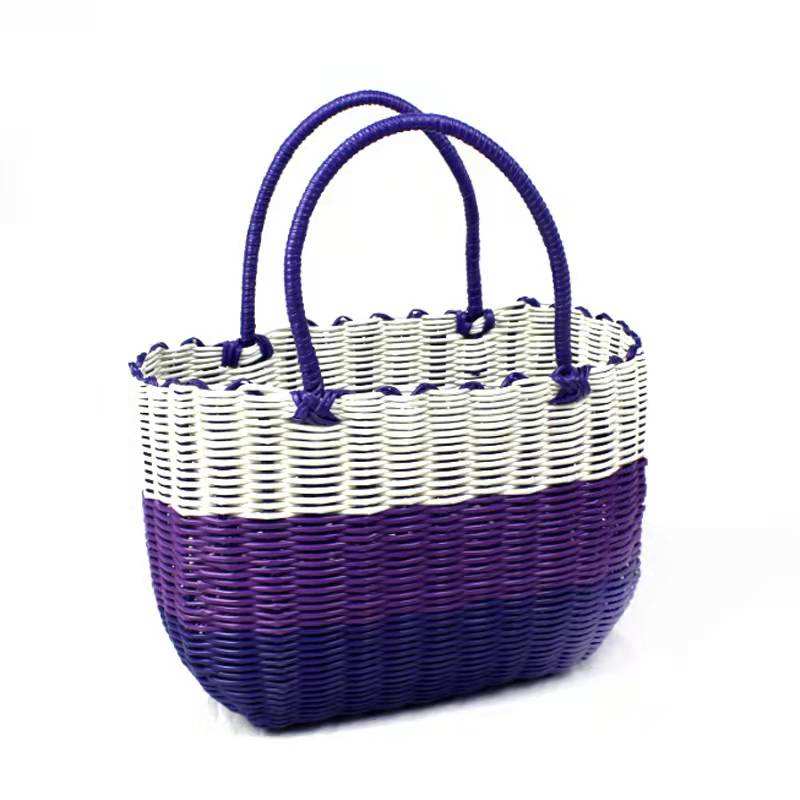 Panier de rangement en plastique et rotin, panier à linge coloré tissé, taille personnalisée, fabrication d'usine
