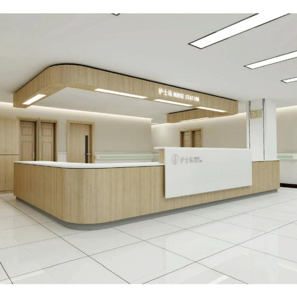 Fabrication et conception de comptoirs de réception en forme de L en surface solide de style européen pour hôpitaux, mobilier écologique pour postes infirmiers
