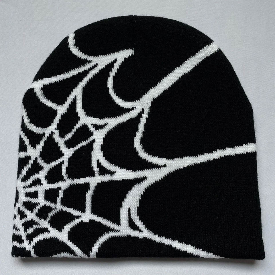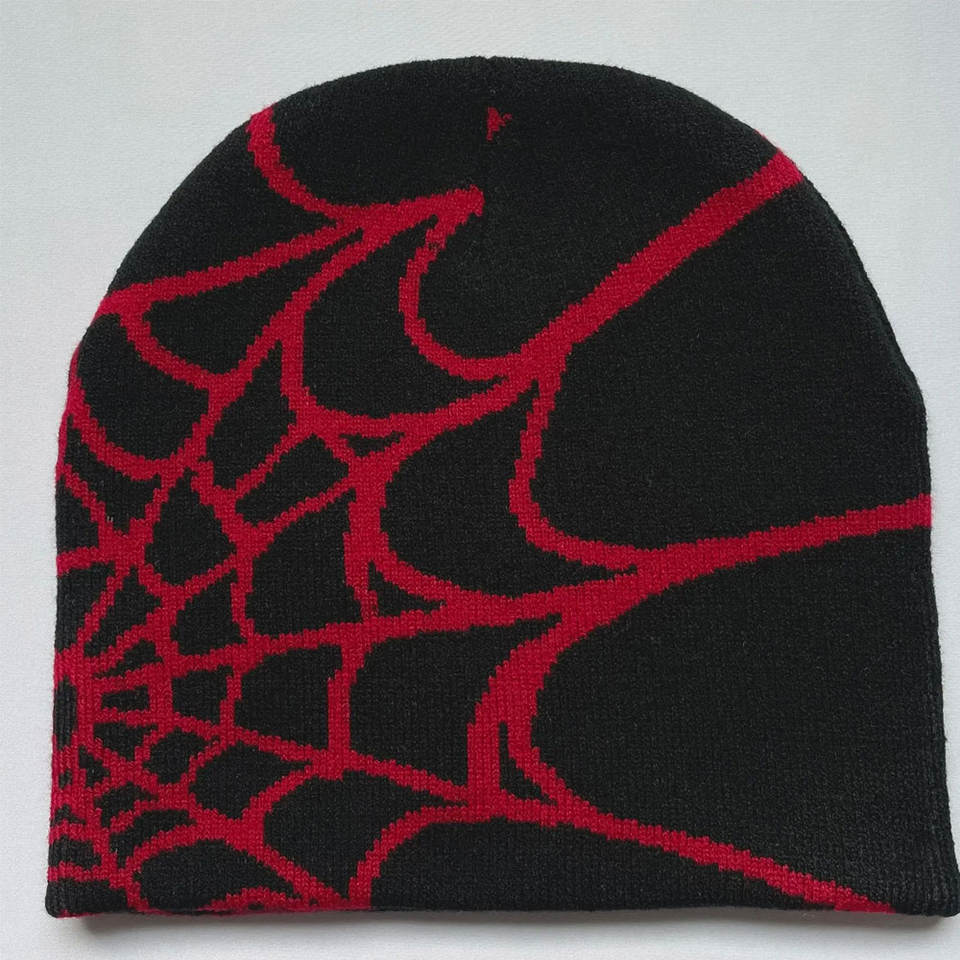 Manufacture Full Custom LOGO Y2K Acrylic Knitted Beanies Hats Spider Silk Satin Line Jacquard Hats Winter Streetwear Beanie