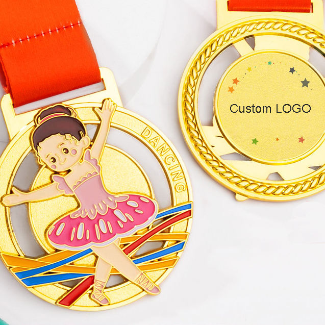 Fabrication personnalisée métal or argent cuivre prix médailles pas de commande minimum médailles de danse avec ruban pour enfants