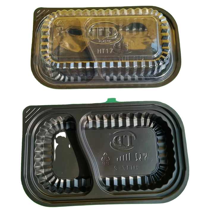 Fabricant 1-2-4 compartiments Récipient alimentaire jetable en plastique couleur noire à emporter avec couvercle transparent