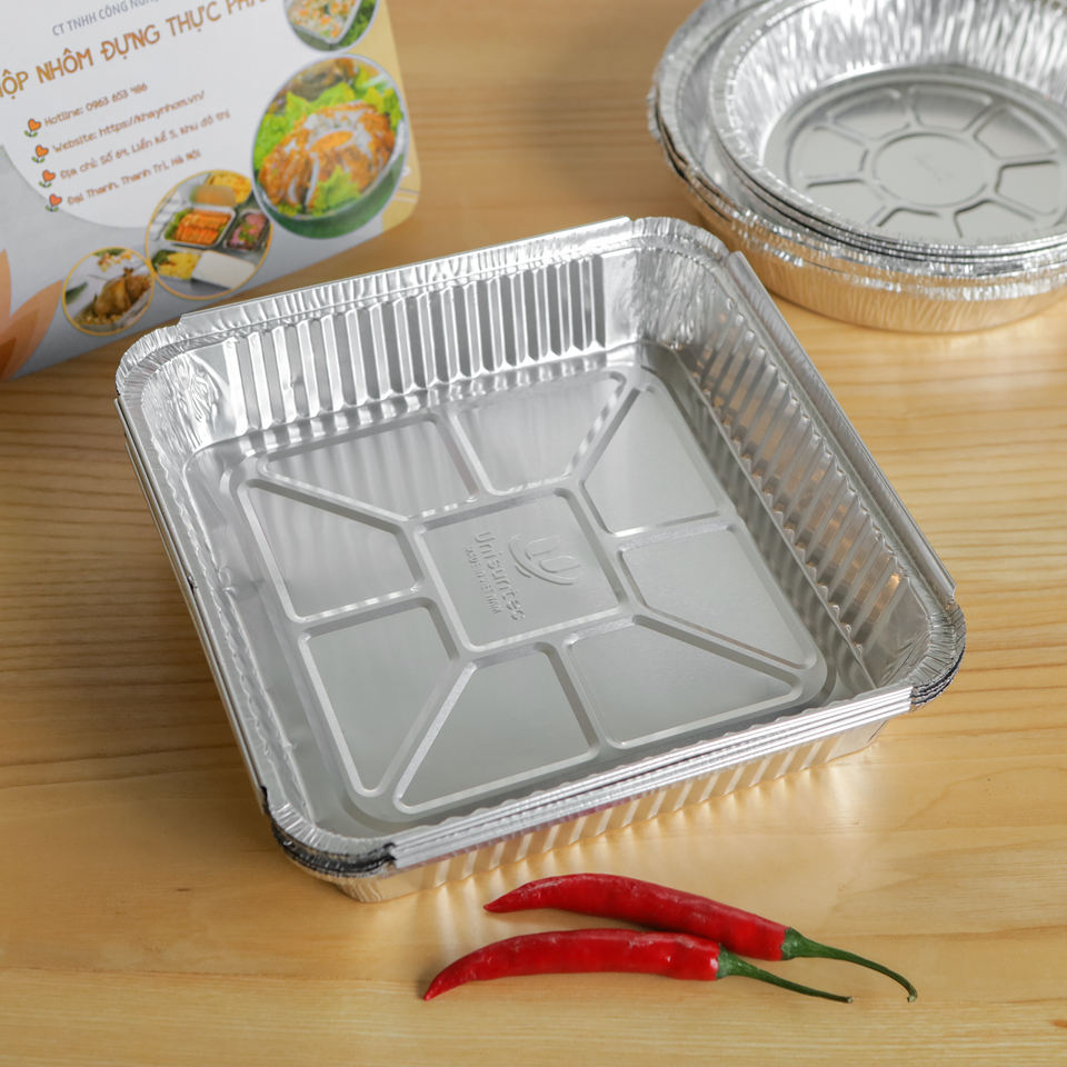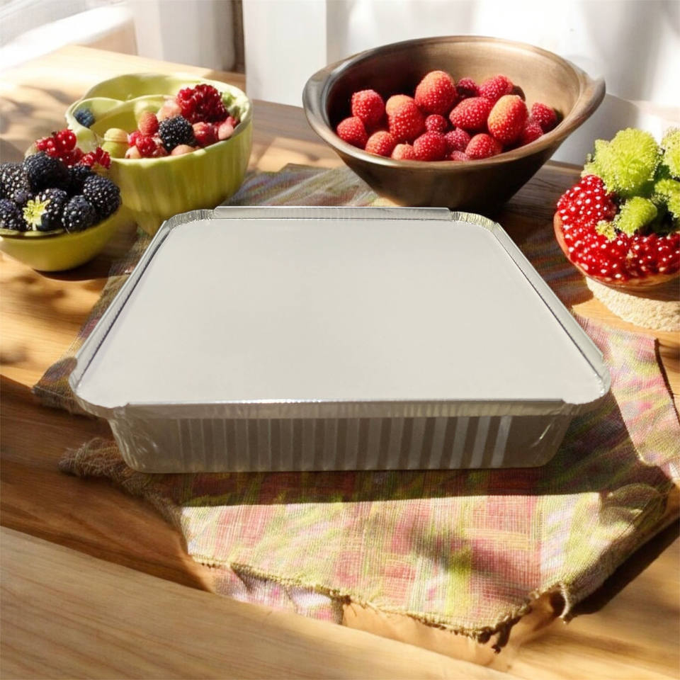 Manufacturer Aluminium Foil Baking Container Silver 9 Inch Square Fast Food Takeaway Aluminum Foil Pan with Lids