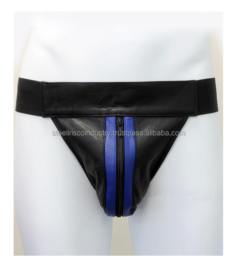 Product Name:Blue Stripe Deluxe Leather Jock Strap