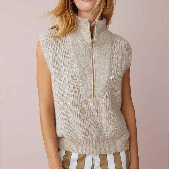 Fabricant personnalisé 1/4 fermeture éclair tricoté sans manches culture tricots laine cachemire femmes fermeture éclair pull court gilet pour les femmes