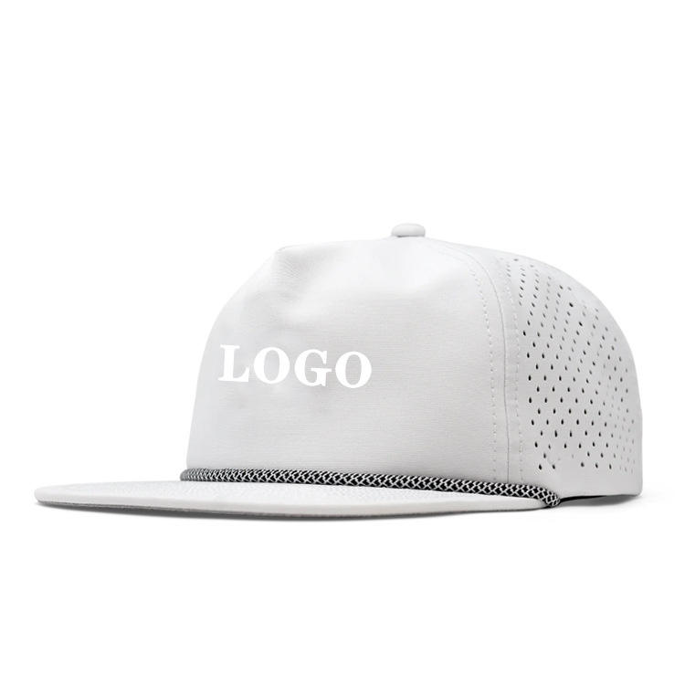 Casquette de sport de golf imperméable en polyester à 6 panneaux, personnalisée par le fabricant, avec perforations découpées au laser et visière plate, style snapback