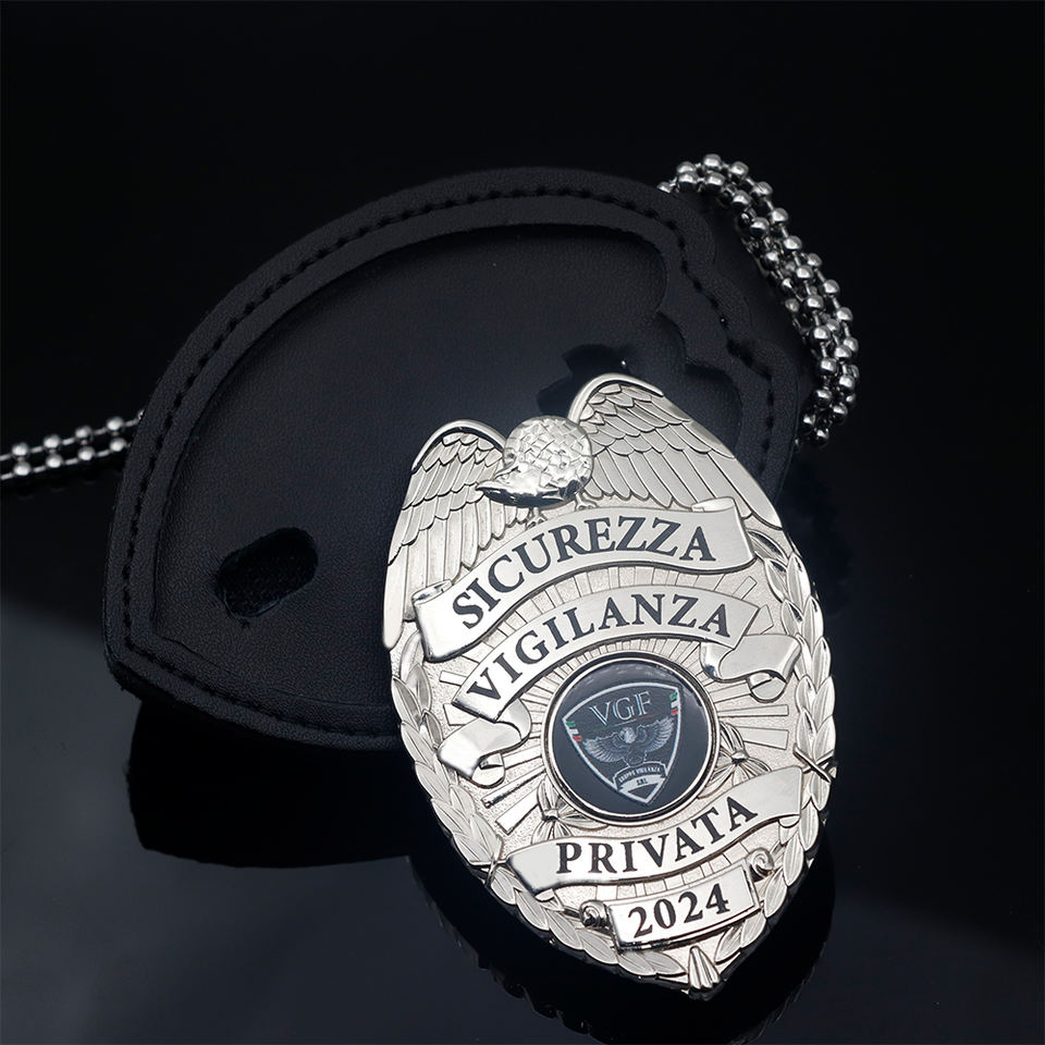 Badges de sécurité personnalisés en métal gravé pour uniformes, badges de logo de garde, porte-monnaie – Fabrication sur mesure à prix compétitif