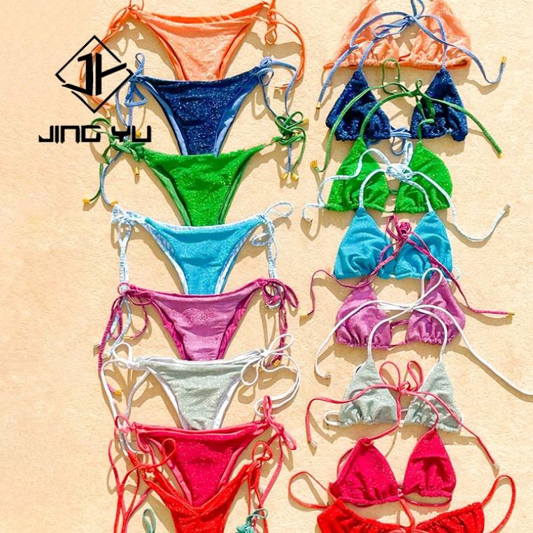 Manufacturer Custom Eco-friendly Fabric Swimwear Bikini Custom With logo Print Glitter Bikini Two Piece Set