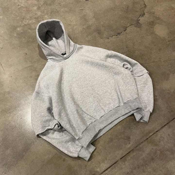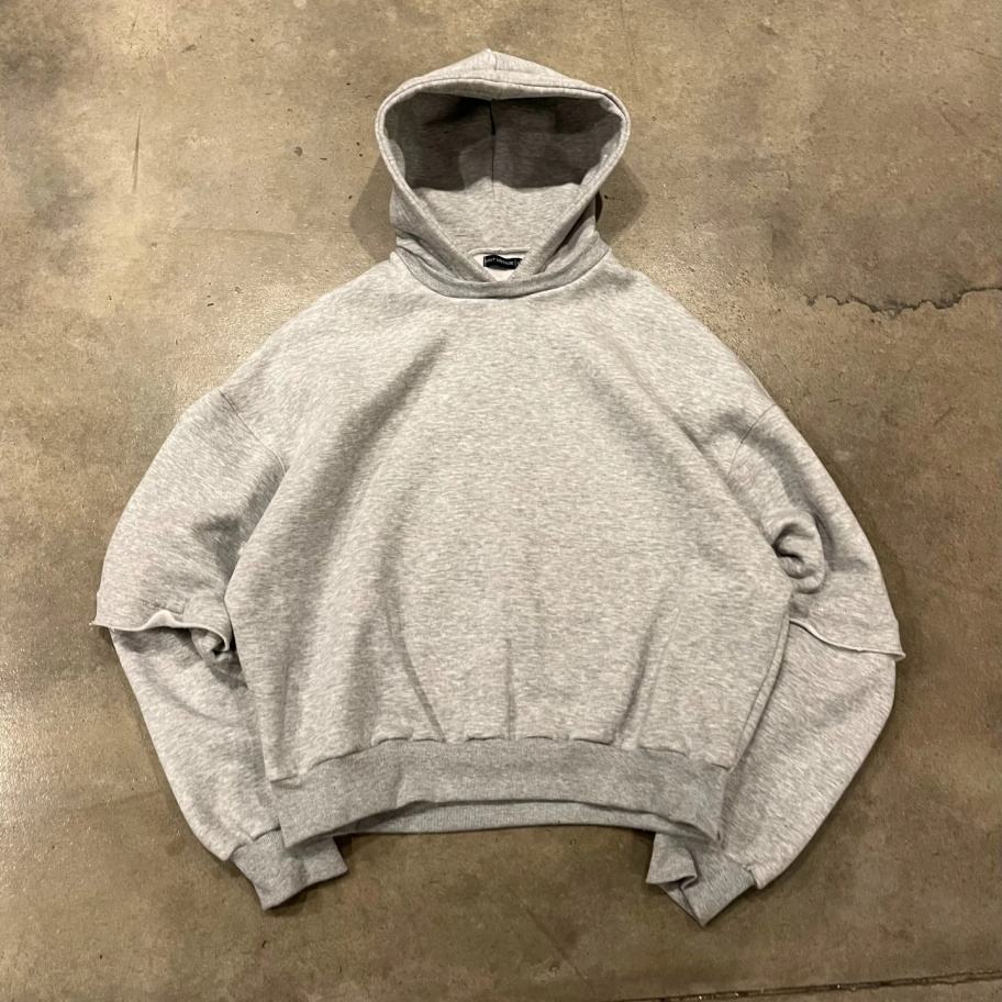 Manufacturer Custom Heavy Weight 420gsm Cotton French Terry Dropped Shoulders Blank Boxy Cropped Double Layer Sleeves Hoodie