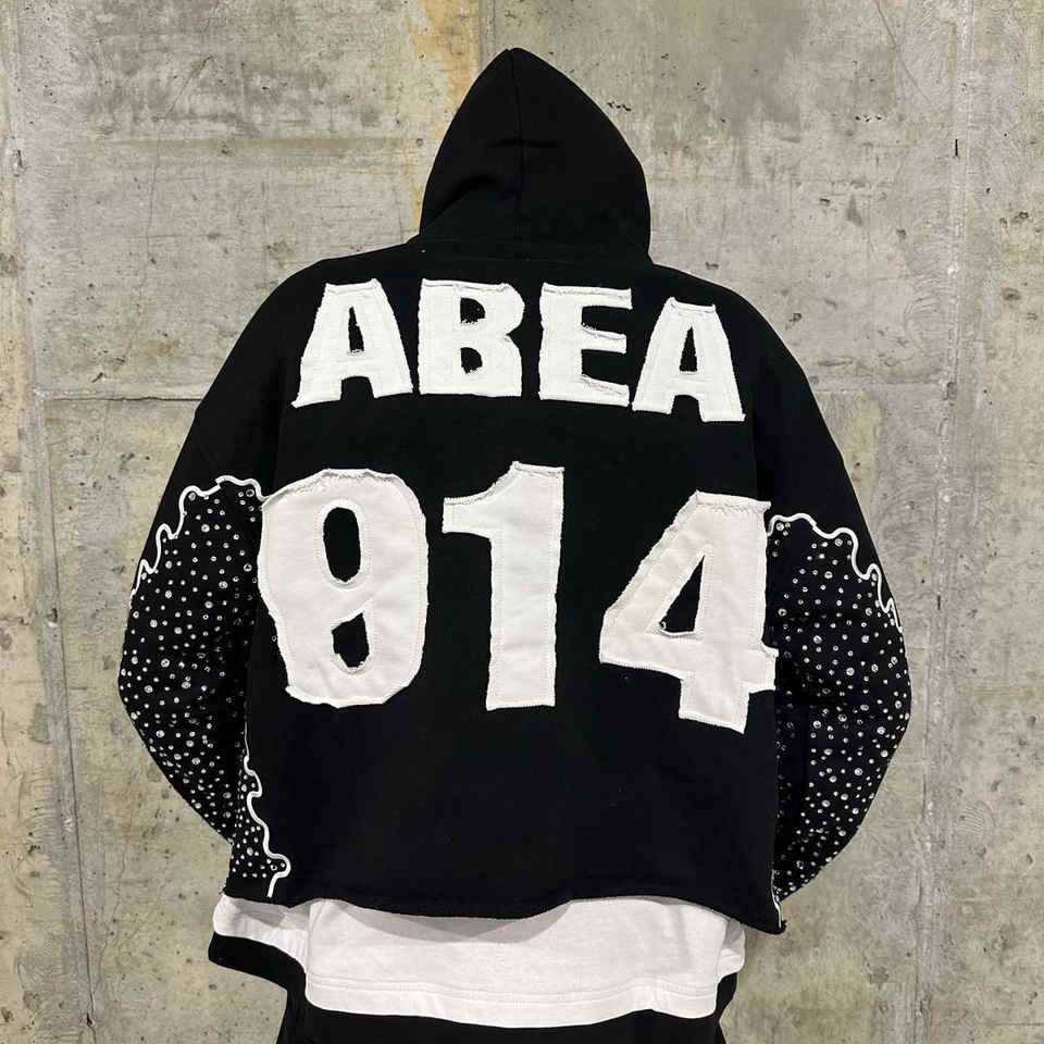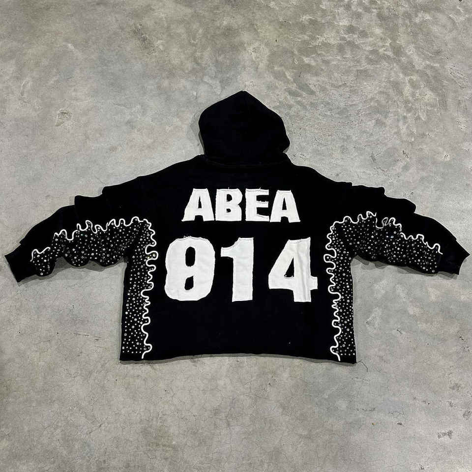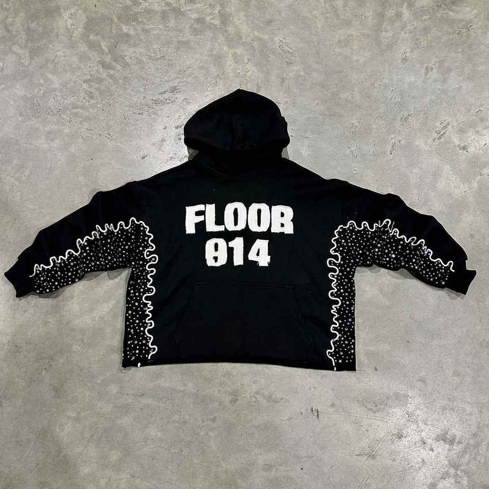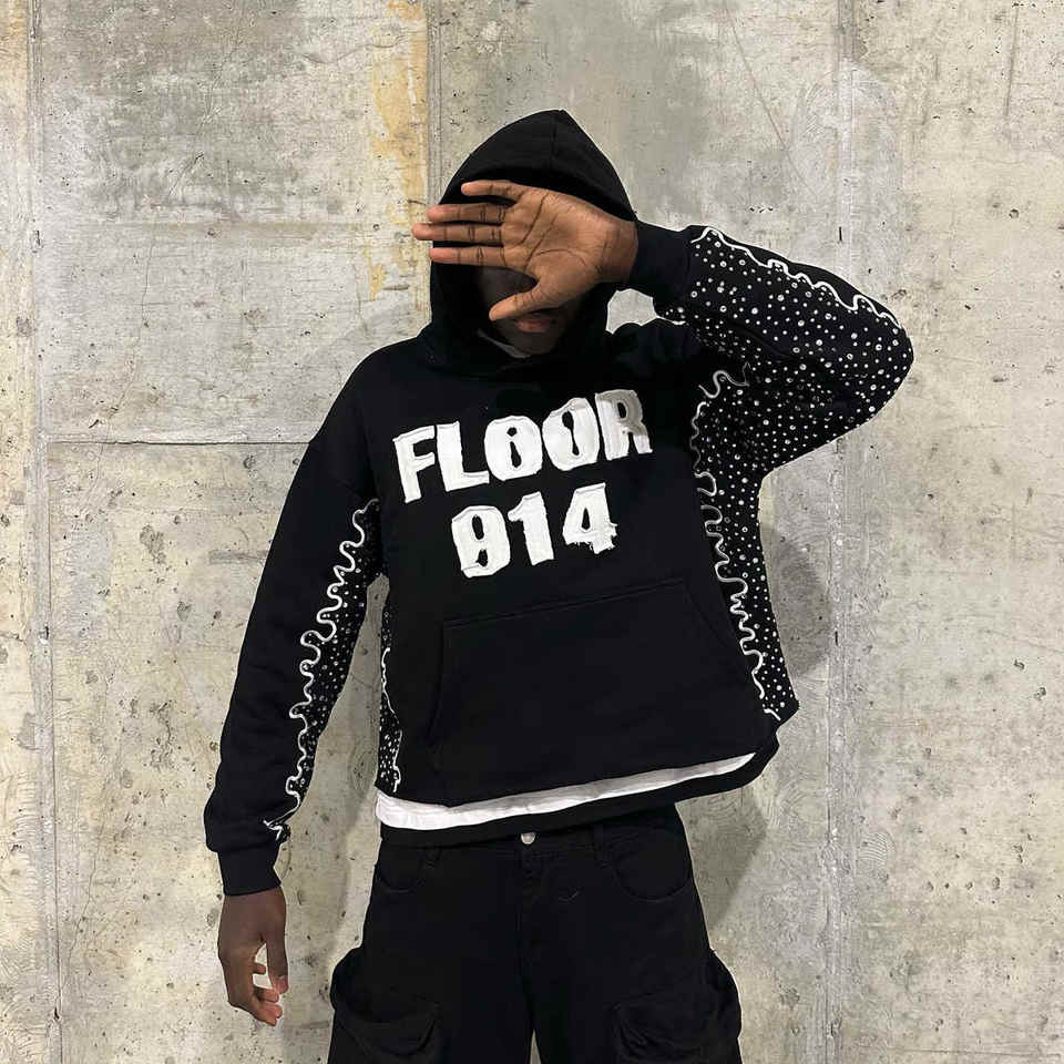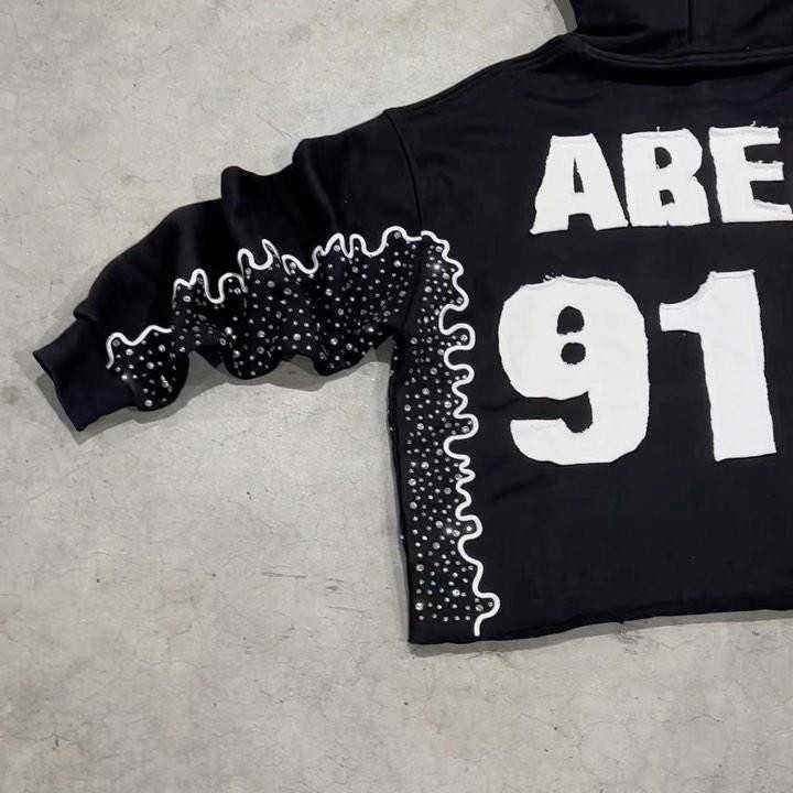 Fabricant d'écusson de broderie vieilli personnalisé 500GSM French Terry Boxy Cut Edge Raw Hem Cropped Rhinestone Hoodies