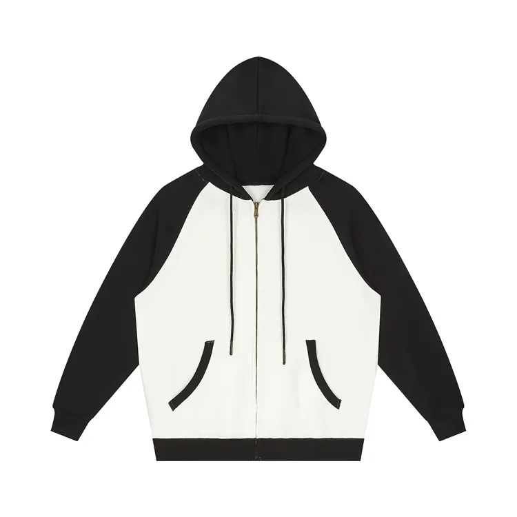 Fabricant Logo Personnalisé Couleur Contraste Zip Up Sweatshirts à Capuche Polaire Doublé Premium Hoodies pour Hommes pour Femmes