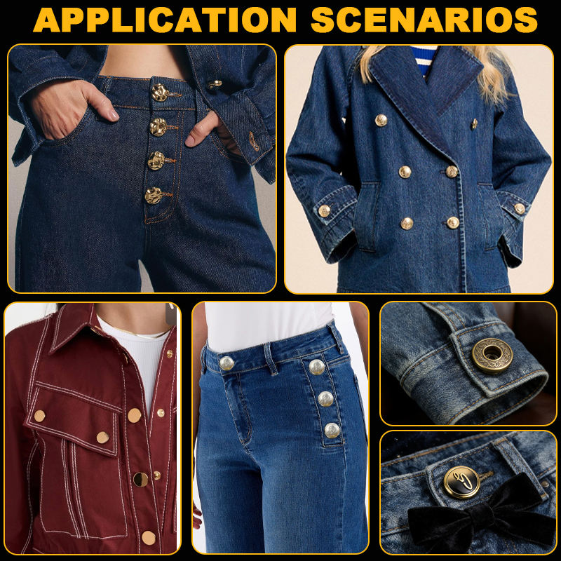 Type de texte:Bouton de jean en denim métallique