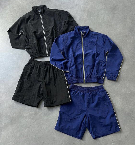 Ensemble veste coupe-vent et short en polyester et nylon avec logo personnalisé du fabricant, ensemble de survêtement coupe-vent