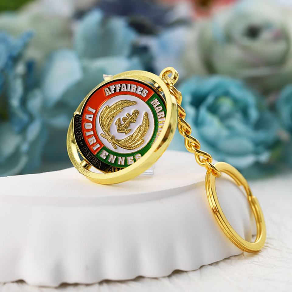 Porte-clés rotatif personnalisé avec logo du fabricant, en métal, alliage de zinc, émail, rotation à 360 degrés