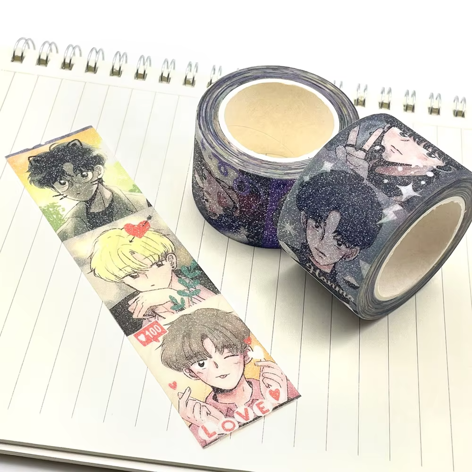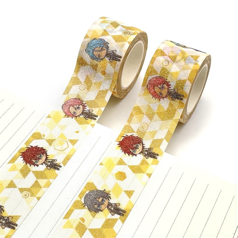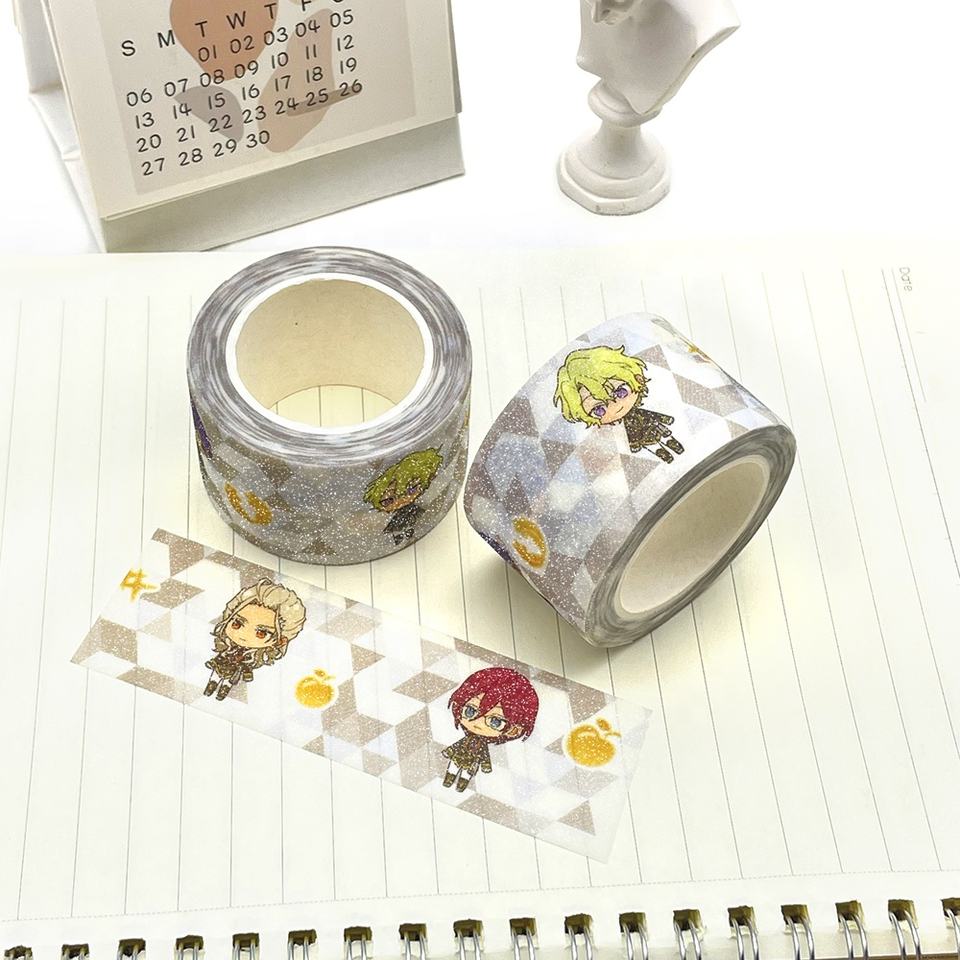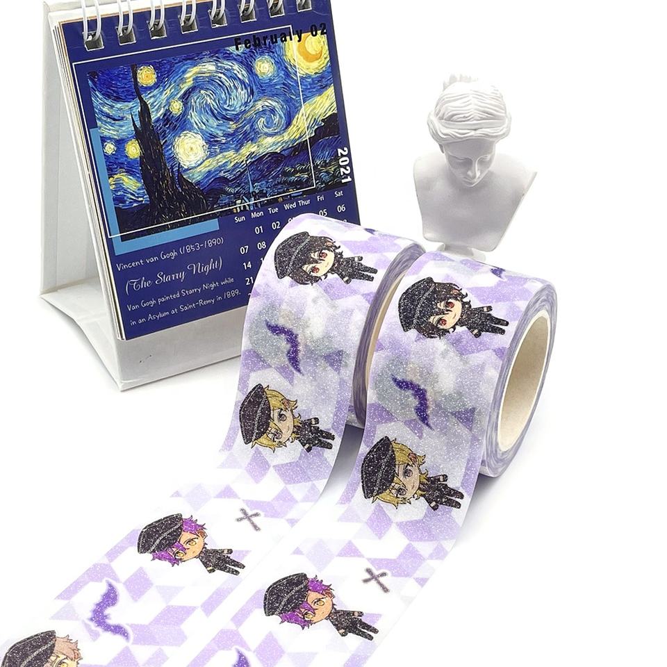 Ruban adhésif washi japonais imprimé avec motif de lune coloré perforé, feuille d'or et paillettes, fabrication sur mesure par le fabricant