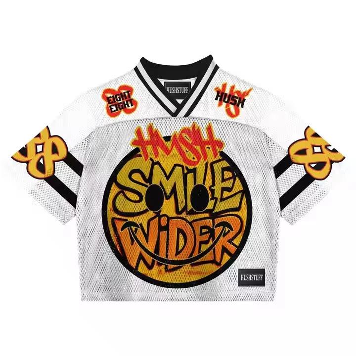 T-shirt court en maille pour homme, coupe ample, imprimé personnalisé par le fabricant, style football américain, basketball, baseball, hockey
