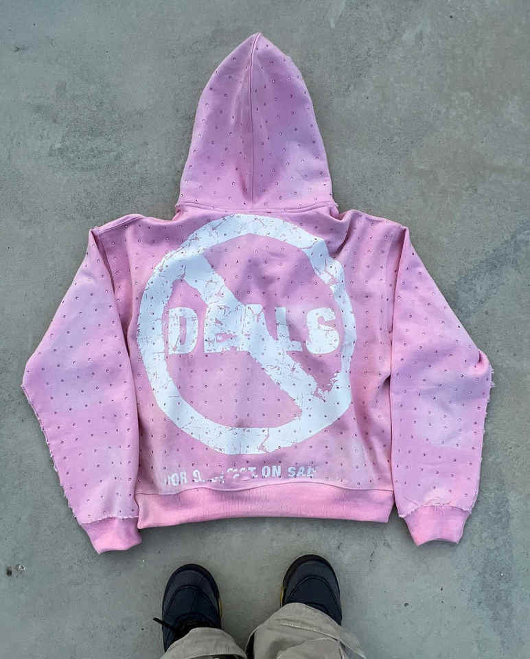 Patch brodé personnalisé en strass pointus effet vieilli unisexe pour sweat à capuche 100 % coton hiver, appliqué vintage délavé à l'acide