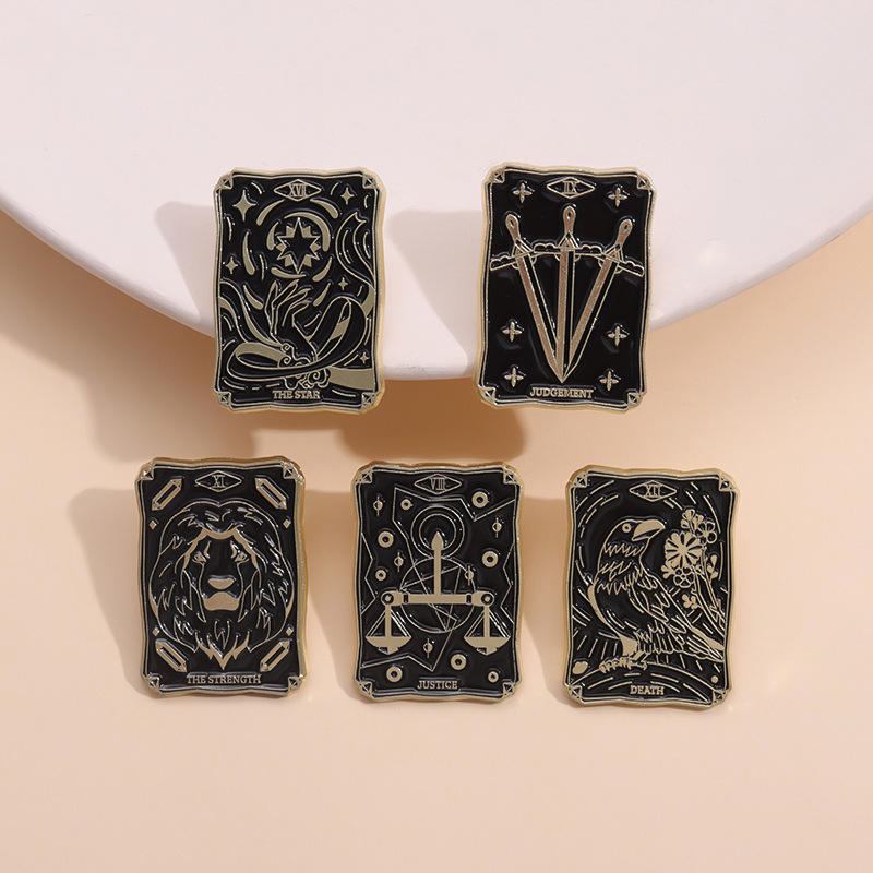 Épinglette de chapeau en émail doux personnalisée par le fabricant, carte de tarot, divination du destin, personnalité, artisanat en métal fer, épinglette de revers pour cadeau
