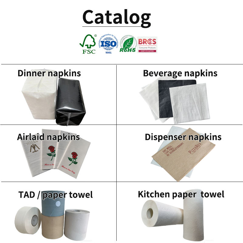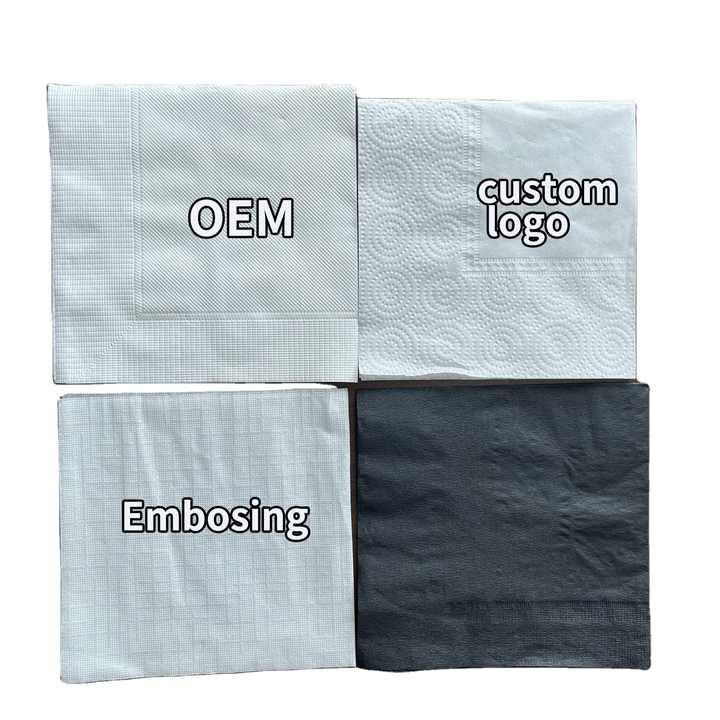 Serviettes jetables personnalisables blanches gaufrées imprimées, écologiques, pliées en 1/4, en pâte de bois, pour la restauration, douces, en vrac
