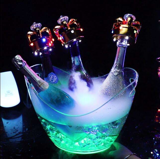 Fabricant de piles sèches personnalisées Club Serveur Discothèque Écran en soie transparent 2L 4L 8L 12L LED Seau à glace