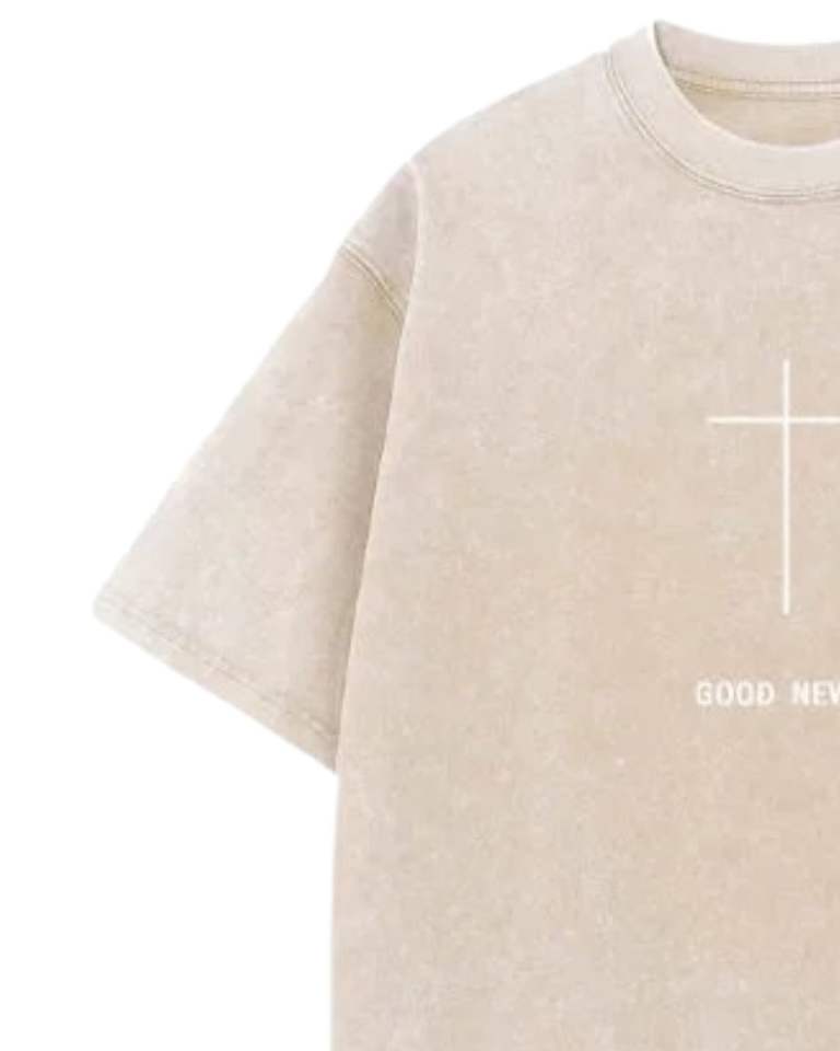 T-shirt en coton lavé surdimensionné personnalisé par le fabricant, beige, imprimé croix religieuse, streetwear pour hommes, look vintage, tee-shirt décontracté