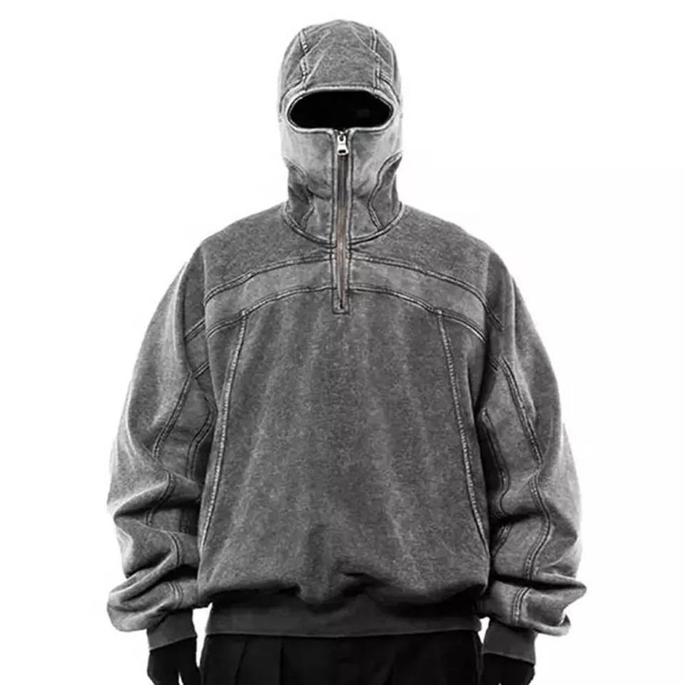 Sweatshirts à capuche personnalisés pour hommes du fabricant Sweatshirts à capuche 500Gsm Heavyweight Half Zip Acid Wash Print 3D Blank Size Hoodie