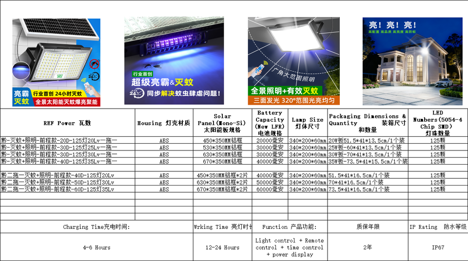 Projecteur solaire LED 3000W + Combinaison anti-moustiques UV à élimination physique, garantie 3 ans, IP67, vente en gros OEM, directement du fabricant