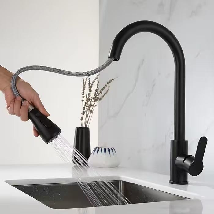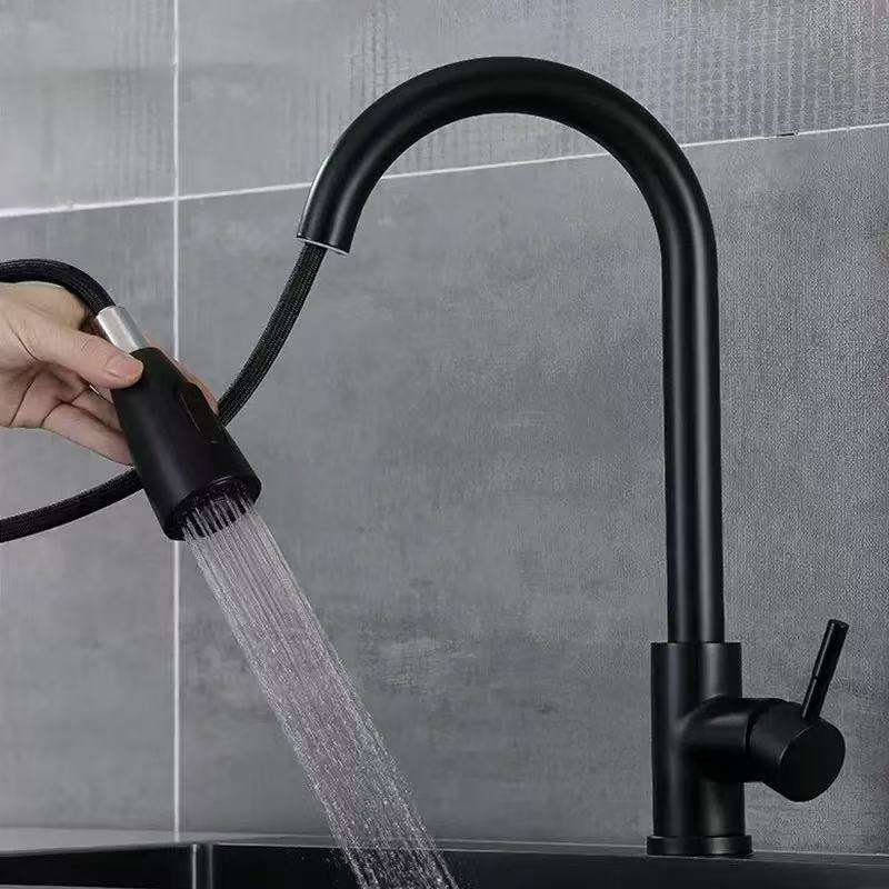 Robinet de cuisine à tirette noir pour évier de cuisine Robinet d'arrêt d'eau à une clé