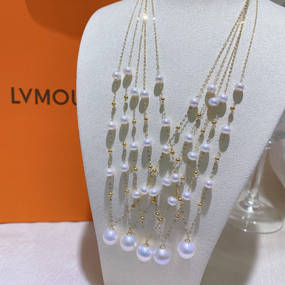 Manufacturer Direct Sales Dazzling Blue Genuine Linen Necklace Around 7mm Near Perfect Circle Wholesale Pearl Necklaces