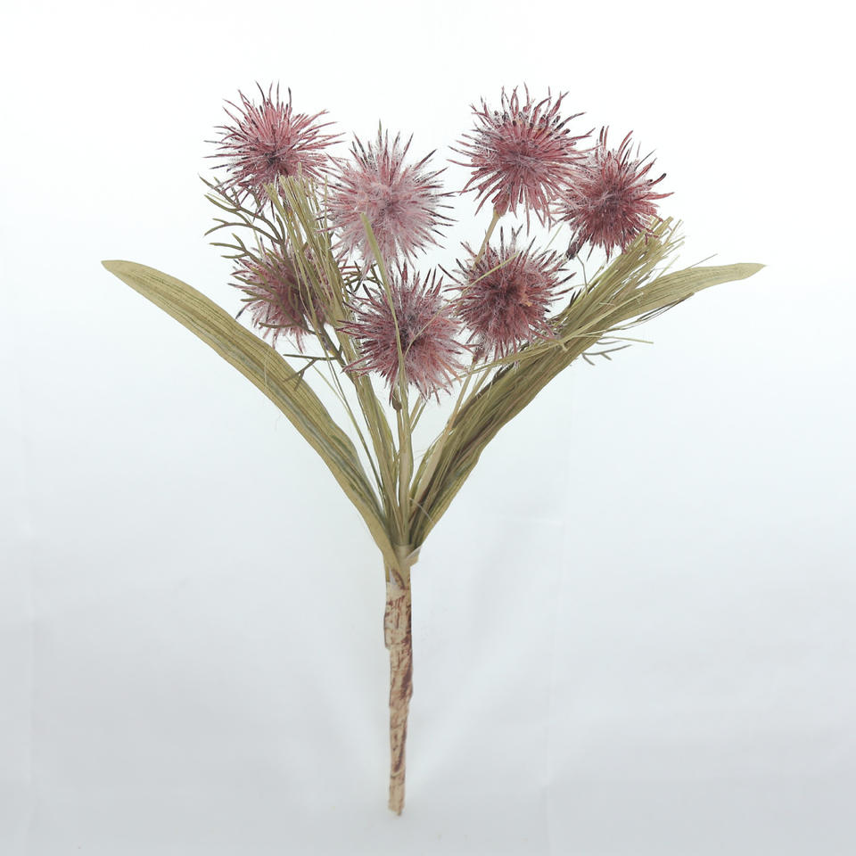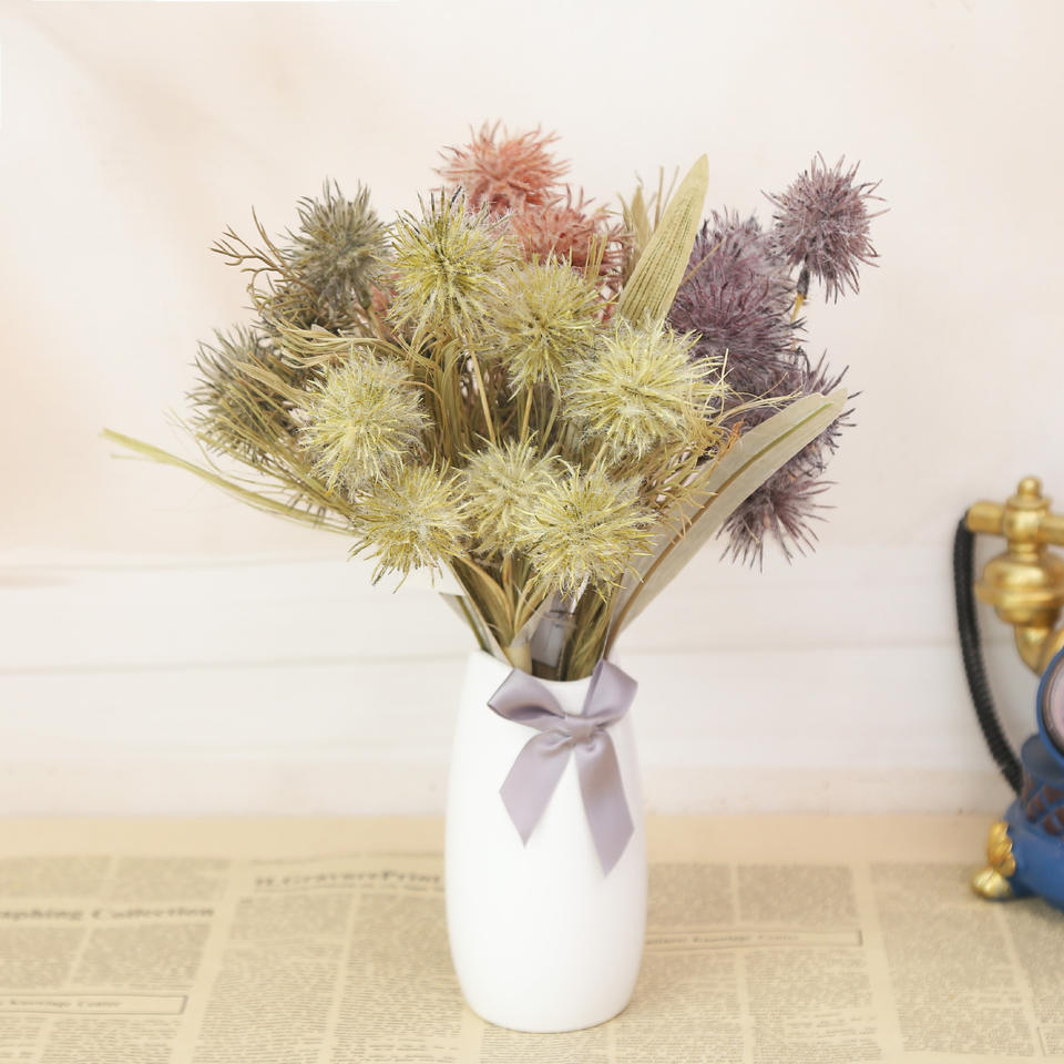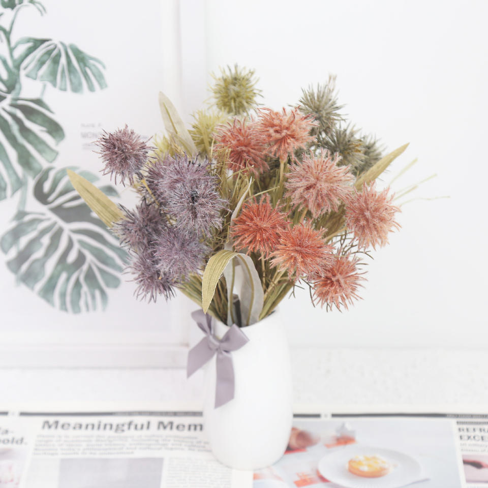 Vente directe du fabricant Fleur haute fidélité à 3 têtes en forme de boule piquante pour la décoration de la maison, du salon et de l'hôtel.