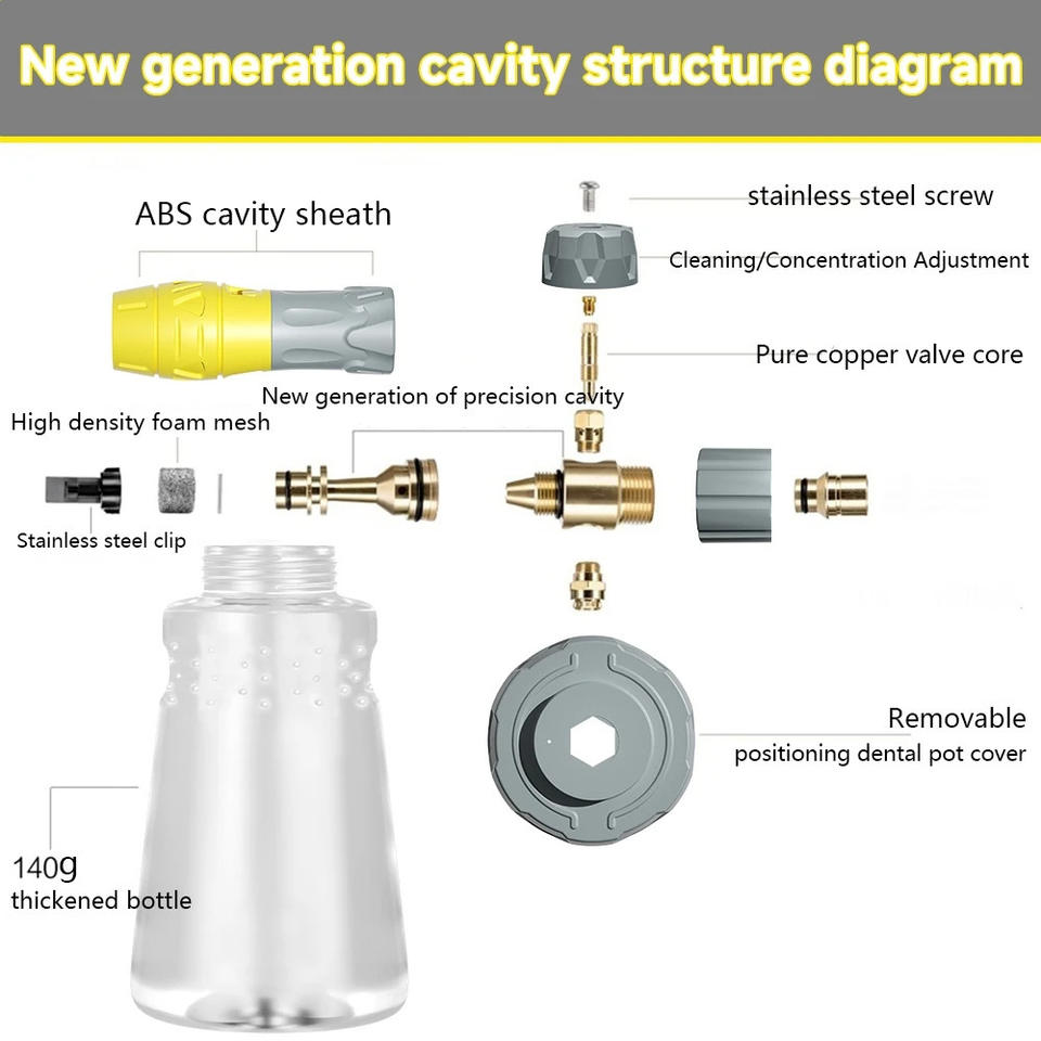 Vente directe du fabricant Nouveau pulvérisateur de mousse pour lavage de voiture en acier inoxydable haute pression 5MPa 1/4 Insertion rapide 1000ml Grand