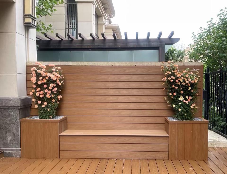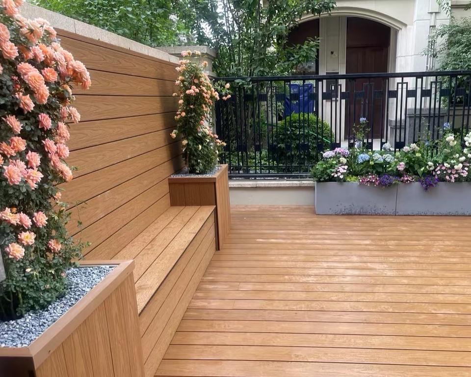 Vente directe du fabricant, revêtement de sol extérieur en WPC carré pour jardin, revêtement de sol extérieur, terrasse, cour, site pittoresque