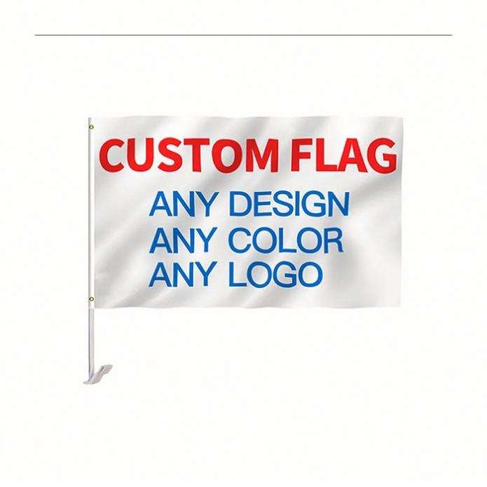 Drapeau personnalisé en polyester vierge pour sublimation, pour vitres de voiture, avec support incassable, directement du fabricant