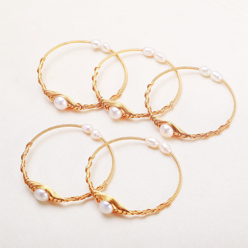 Manufacturer Direct Supply Freshwater White Real Pearl Winding Bracelet Simple Opening Women's Jewelry Fashion Wrap Bracelets