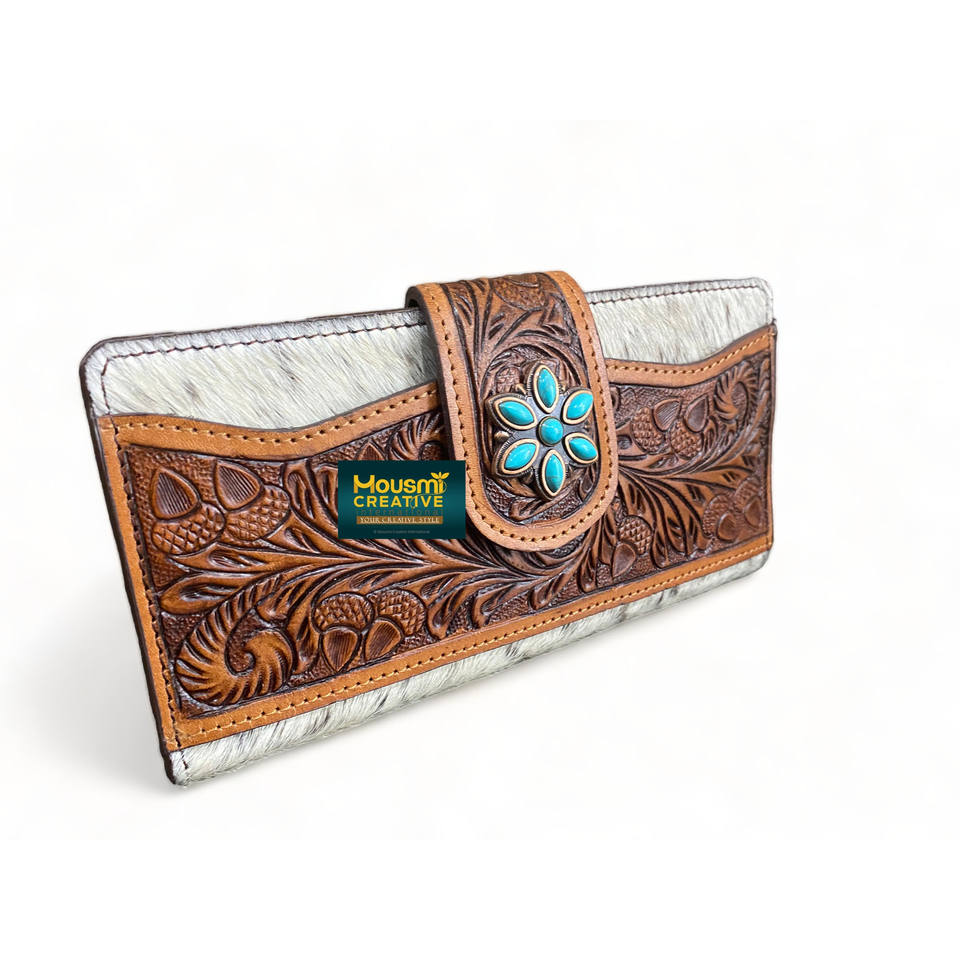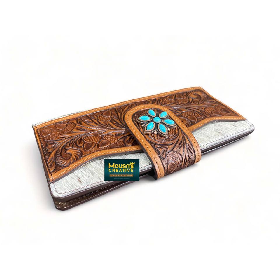 Product Name:OAK Fruit Tooled Stones Decor Strap Closure Women's Clutch Wallet
