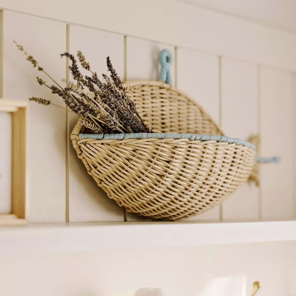 Étagère murale en rotin de pêche naturel, panier suspendu en osier, rangement pour plantes, décoration de la maison, étagère pour enfants en rotin naturel