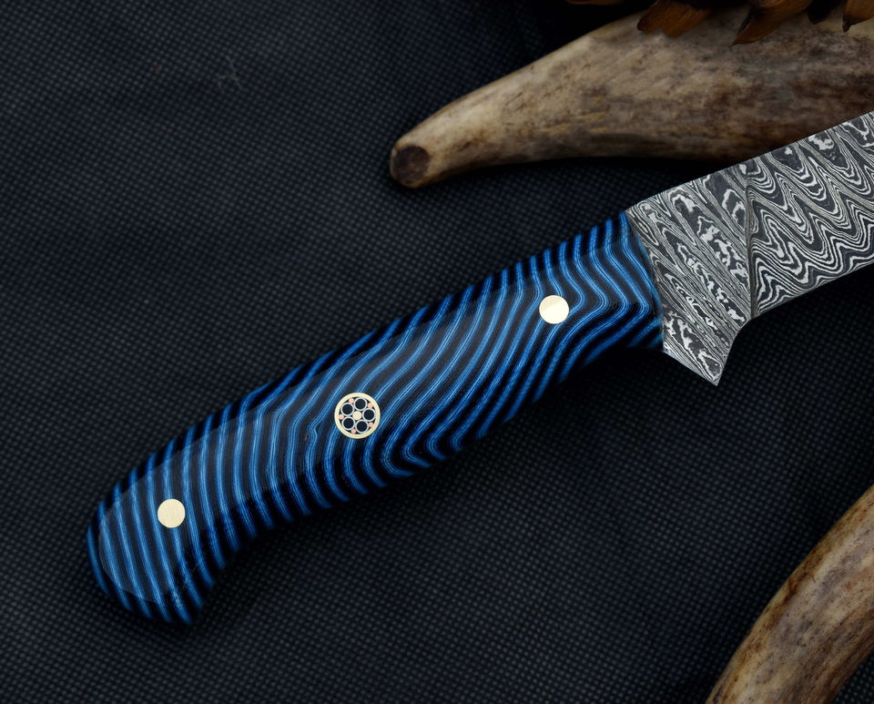 Couteau à filet de poisson en acier damassé fait à la main avec manche en micarta bleu pour le bricolage de qualité.