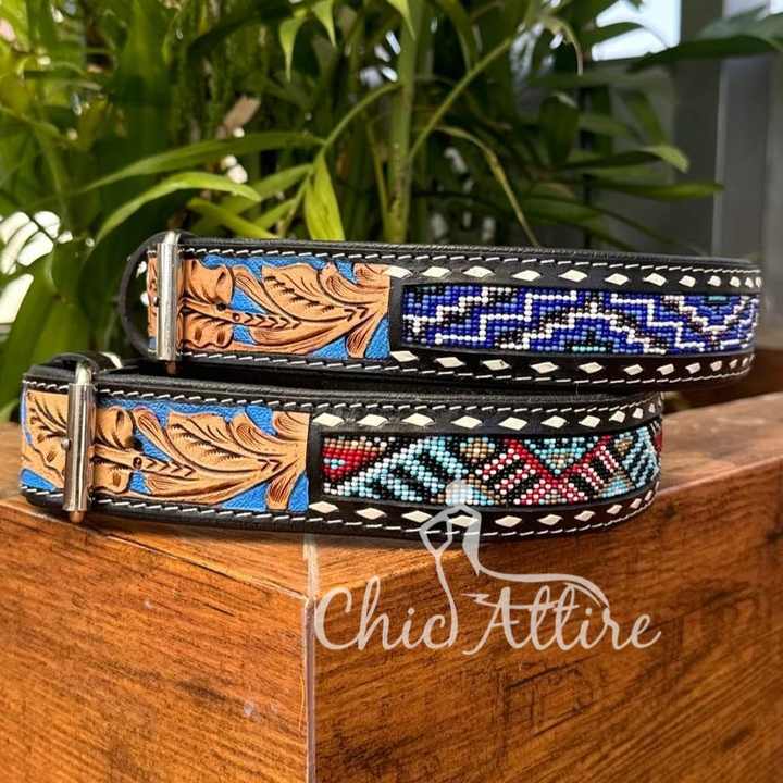 Product name:Hand Tooled Leather Beaded Pet Collar