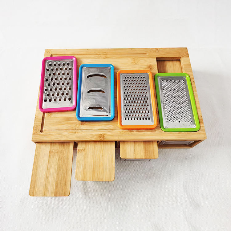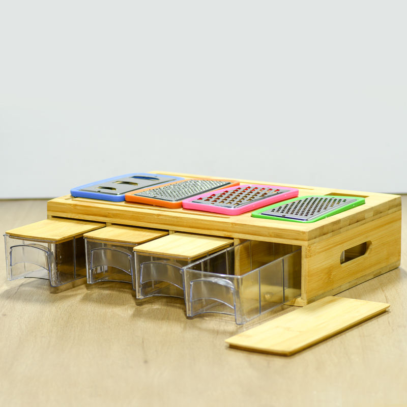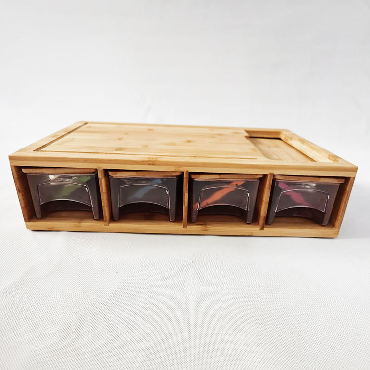 Fabricant d'outils pour fruits et légumes de cuisine Grands plateaux pour blocs à découper en bois naturel Planche à découper en bambou avec 4 récipients