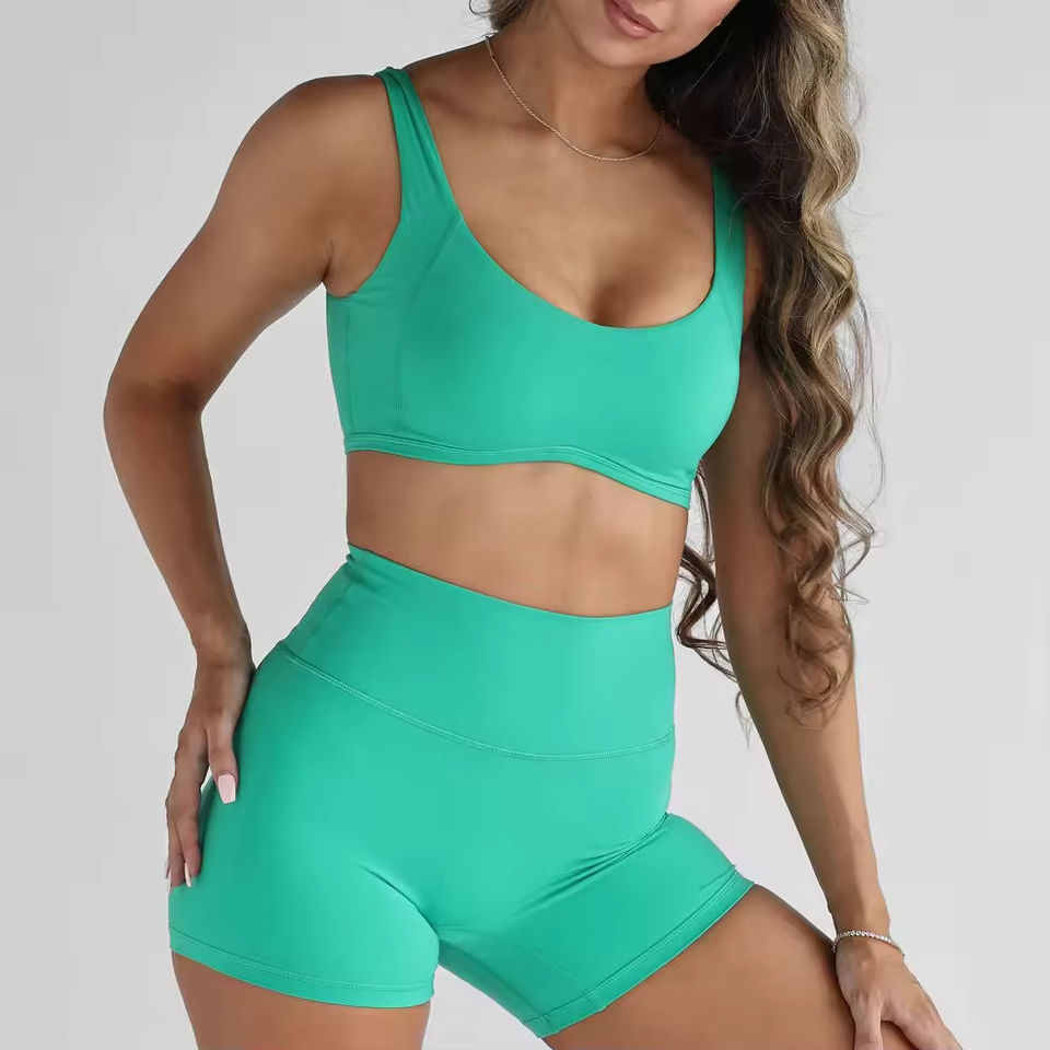 Ensemble de sport OEM du fabricant : Soutien-gorge de sport extensible 4 directions de haute qualité et short de cyclisme, ensemble de yoga léger