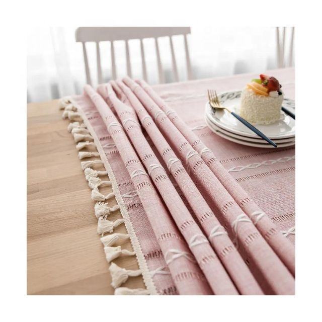 Nappe en coton biologique fabriquée par le fabricant, imprimée à la main, élégante, pour les mariages, les fêtes et les repas à la maison, style lin