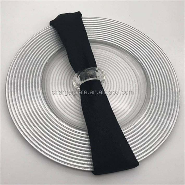 Assiette de présentation en verre à motif filigrané pour décoration de fête et de mariage, par le fabricant