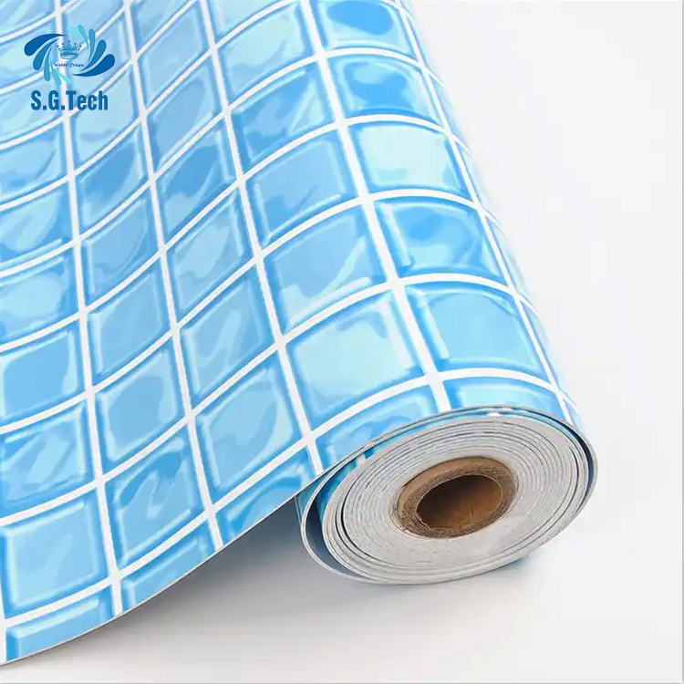 Prix fabricant : Revêtements de piscine en film PVC personnalisés avec logo mosaïque, bleu, antidérapants, en vinyle, imperméables, anti-UV, pour extérieur