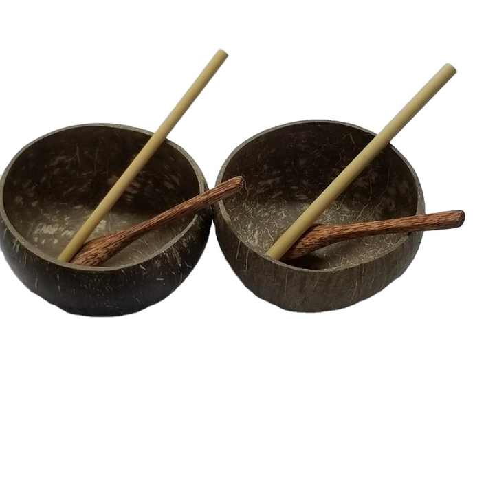 Bol en coquille de noix de coco naturel fait à la main, pièces, pas cher, ensemble de cuillères en bois, LOGO gratuit du Vietnam