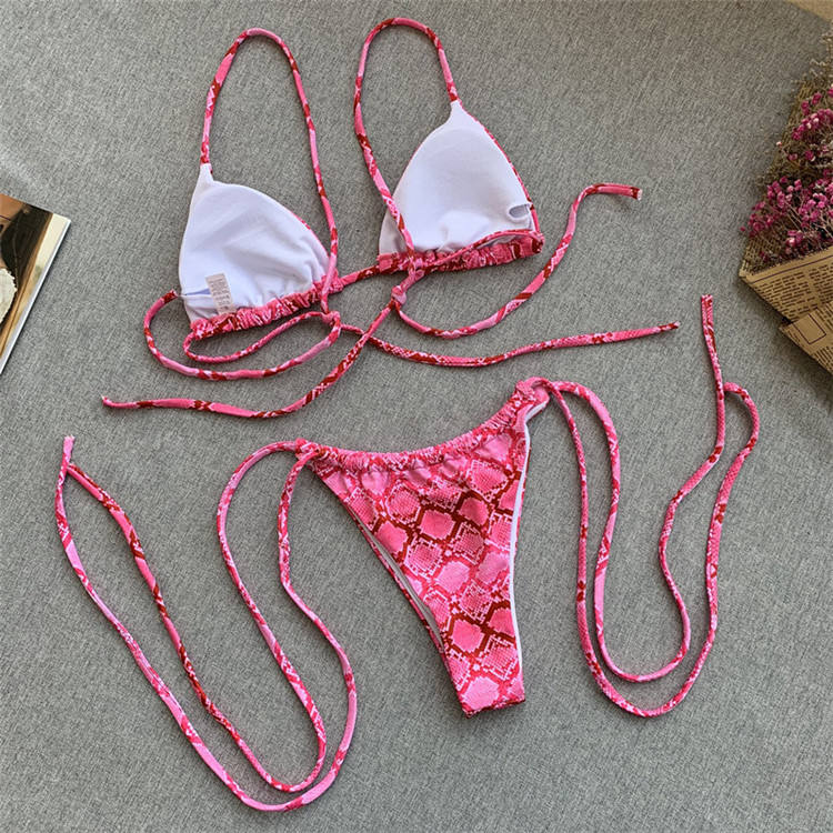 Manufacturer Snake Print Front Tie Sexy Ladies Mature Swimwear Micro Bikini Brazilian