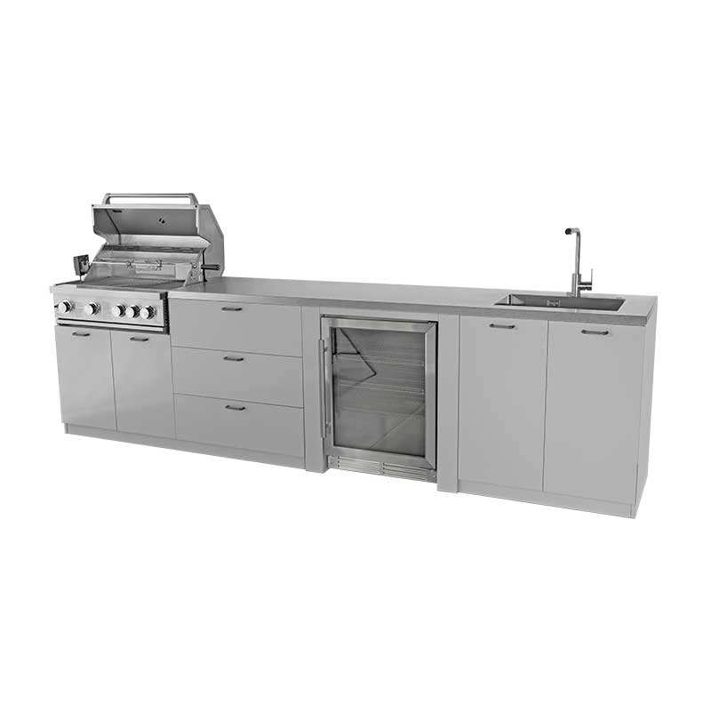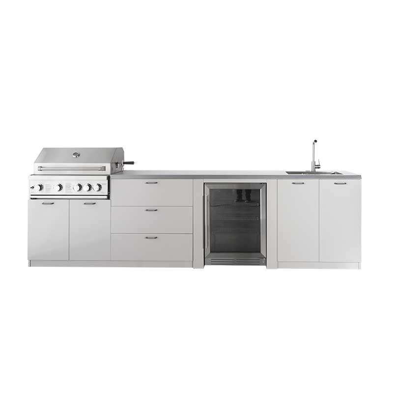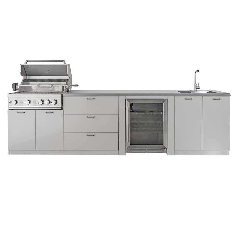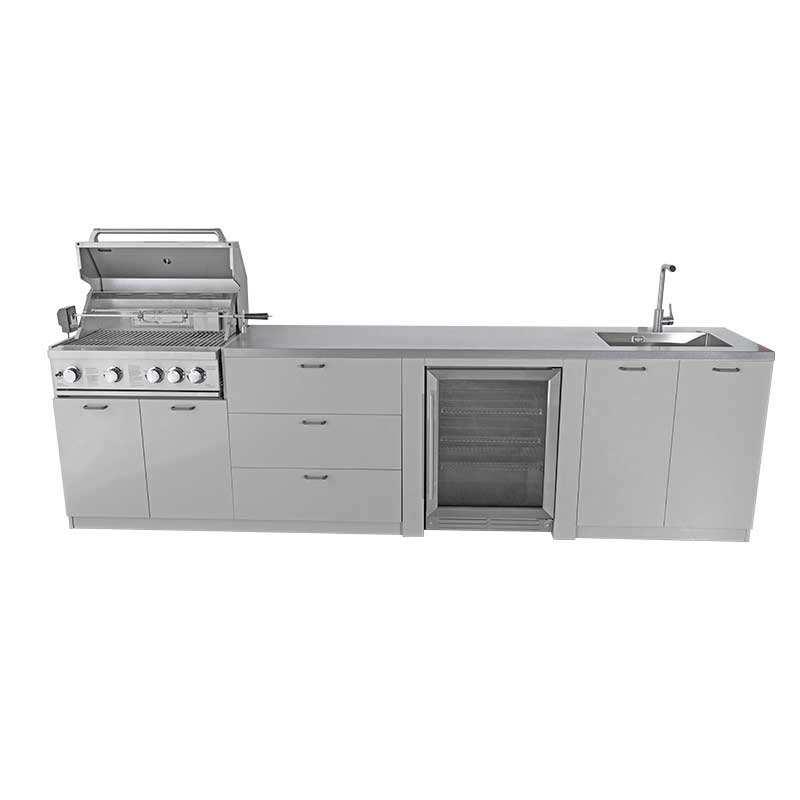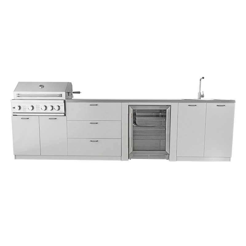 Îlot de cuisine extérieur modulaire en acier inoxydable 4 modules avec comptoirs résistants aux rayures et barbecue à gaz