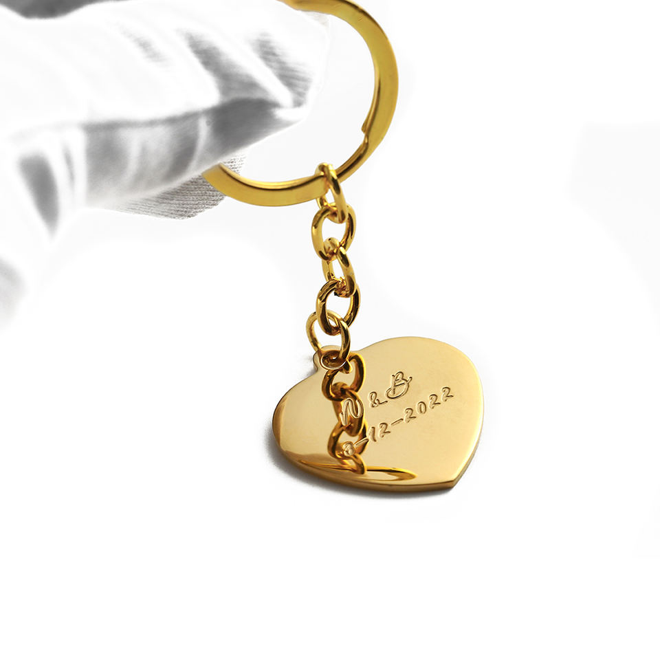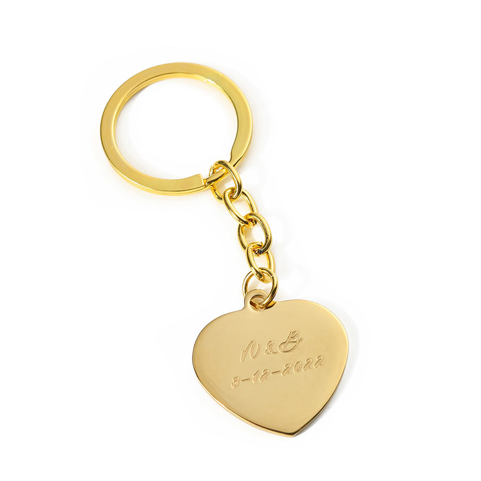 Porte-clés en alliage de zinc, design personnalisé, logo plaqué or, porte-clés en forme de cœur