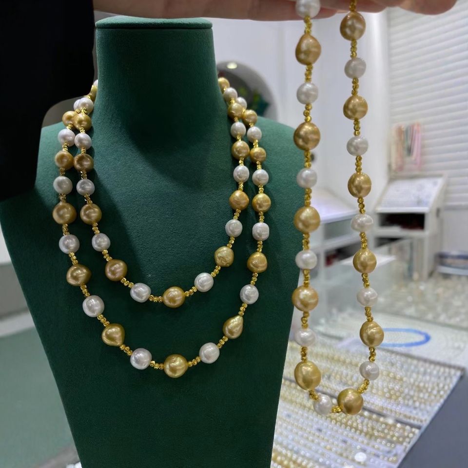 Manufacturer Wholesale 12-14mm Baroque White Pearl Necklace Elegant Dominating Leather and Light Matching Gift Box